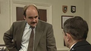 The Thin Blue Line is a British sitcom starring Rowan Atkinson set in a police station that ran for two series on the BBC from 1995 to 1996. It was written by Ben Elton.